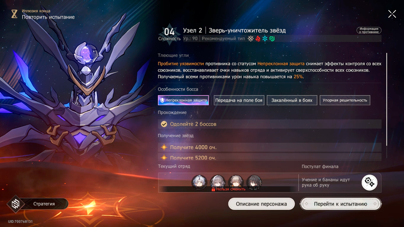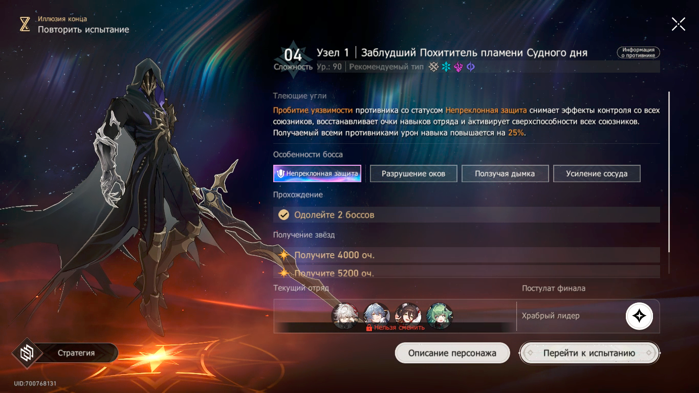 Продолжаем проходить театр. Действительно, в начале Ляо запульнул достаточно сложных мобов, стартовые персонажи их не тянули аж никак. Пришлось стачивать Сянку и прочих важных саппортов. У Рамуды Ляо выдал вообще какой-то невнятный билд - не дамажил, просто не дамажил. Впрочем, Лёнька аналогично ходит в каких-то лохмтьях и нормально лука под него просто нет. Крыло пойдёт кста? Или лучше Тинарику оставить? Второй босс и Калекино хорошо тащит, правда Беня не выпал и пришось ковырять дольше обычного. Впрочем, Ляо не стал душнить, дал возможность дважды заморозить зверюгу и дальше уже было только дело техники его допинать. И да, как же обесценился Толян... Ляо там не хочет произвести бафф старых персонажей, как Блейдика и Бабку из Каловоза? С Генералом прокатило, сейчас с Саньком - одна из самых мощных имеющихся пачек.