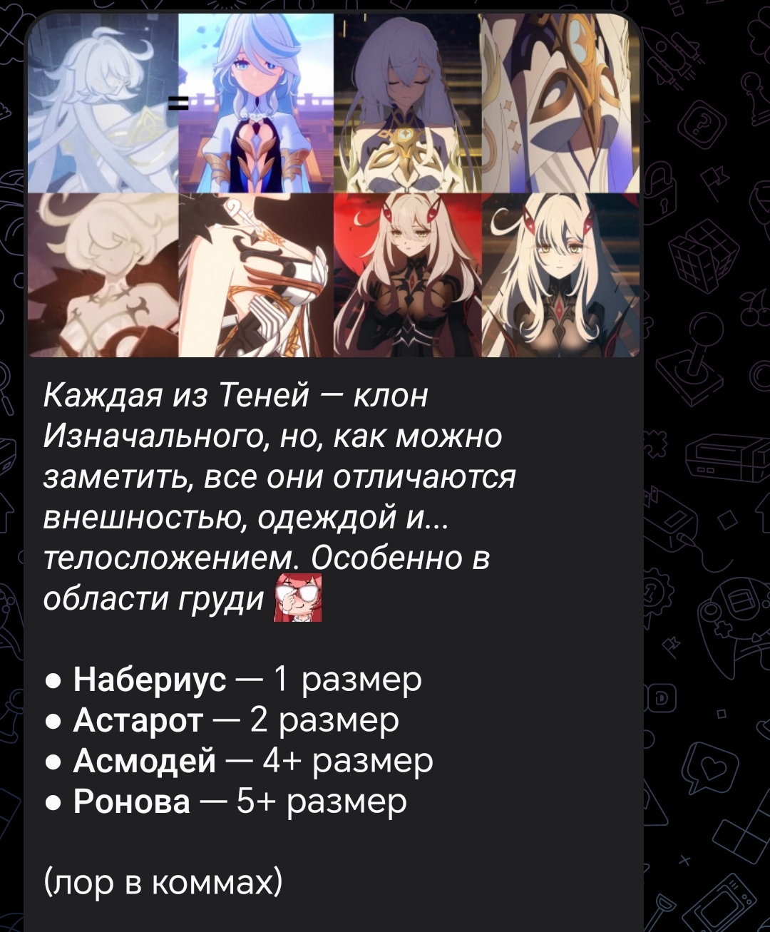 Зашла сегодня в группу по лору геншина, ебать там в алминах сборище ковырялок и нетакусь с завышенным чсв. Наверно сестры-блищнецы местных вахтерш, любительниц яоя