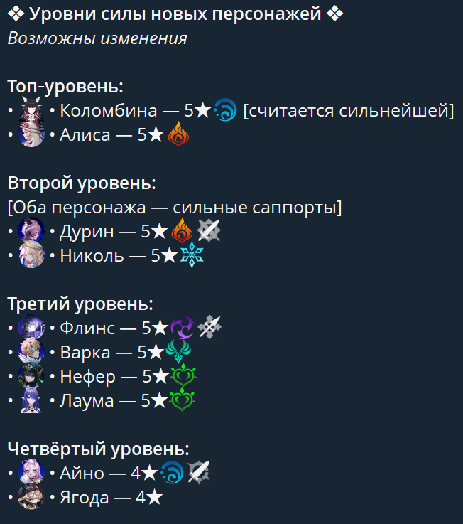Чёт как-то разочаровали персы. Раньше персонажи хоть и коряво, но отображали культуру региона, а тут вообще ни о чем. Ладно, Алиса и николь ведьмы, варка из мондштата, но с остальными что? Где в их дизайнах хоть что-то от скандинавов и народов населяющих рф? Раньше я хоть надеялась, что может к снежной сделают что-то нормальное, но походу нет.
