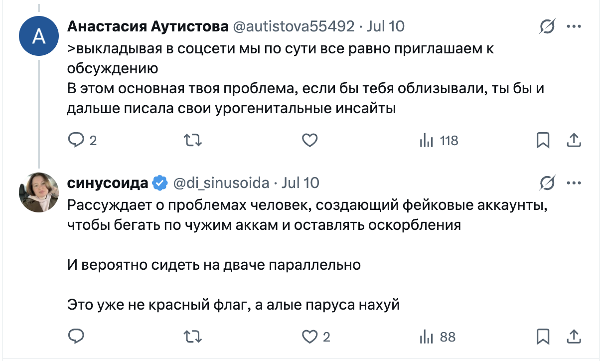 Ну всё таки 16-17 лвл писюха это 16-17 лал писюха. И пофиг, что она там из себя строит. Так что два лба нашли неравного противника. Да и вообще все псевдоинткллектуалки того времени не стали шульман, не стали даже асей казанцевой. Только эбелина на какое-то осознанное академическое отразование теперь метит.
