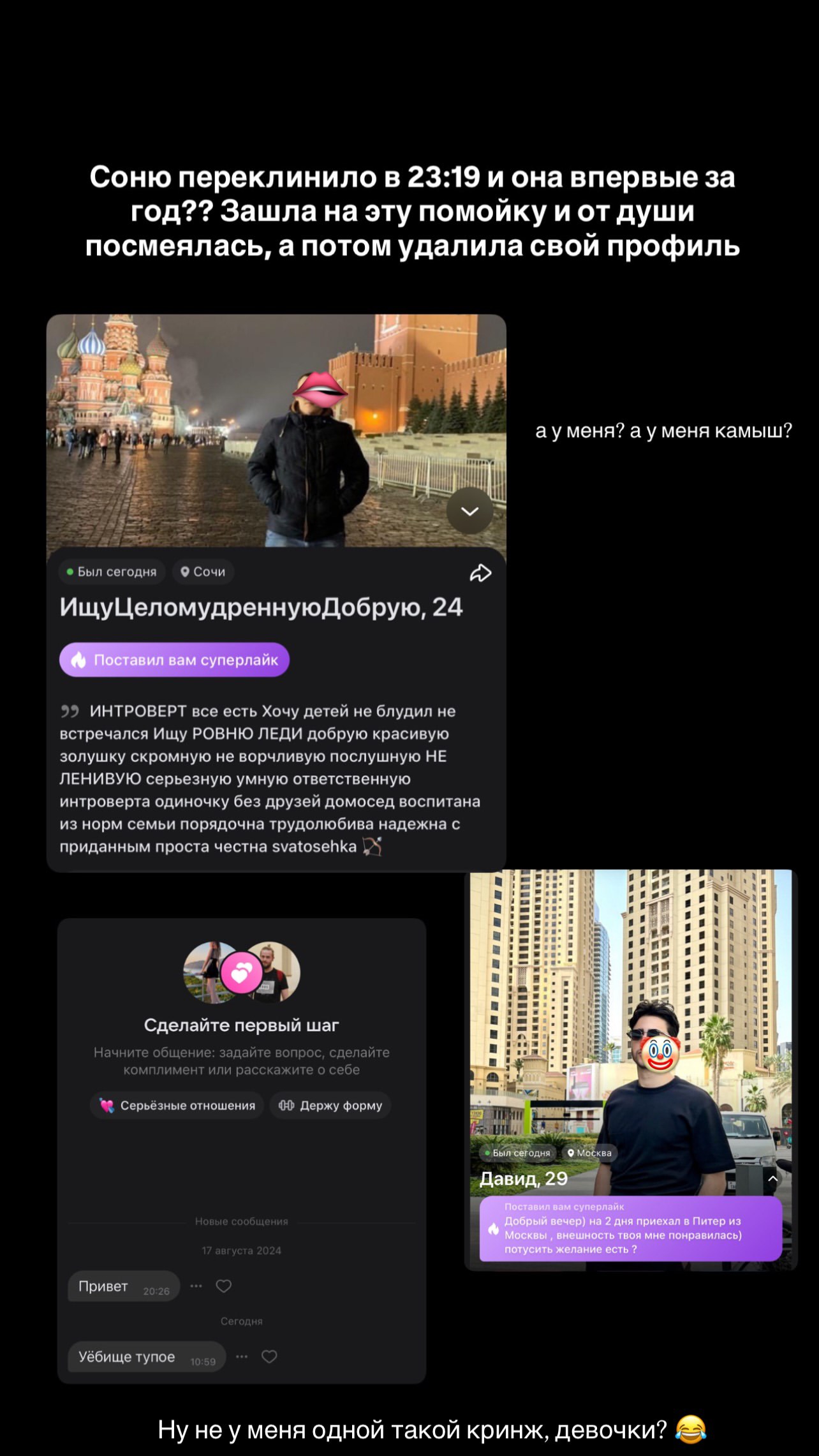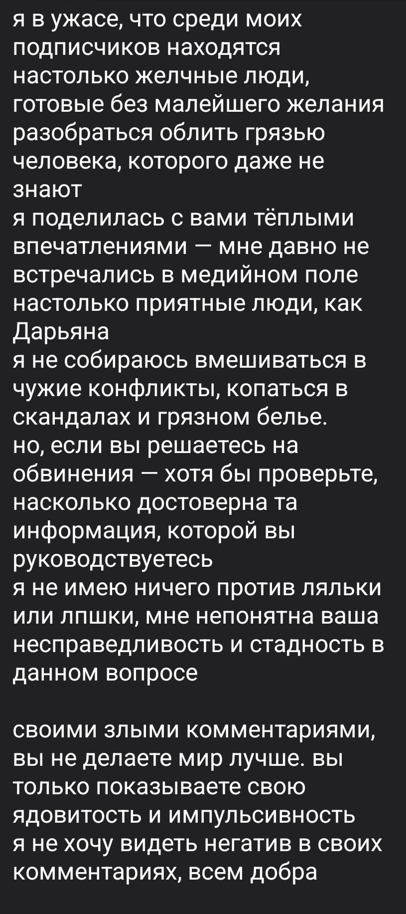 Интересно, что со Шпак происходит? Основные соцсетки снесла, выкладывает только загадАчные тиктоки и в своем паблике про моду периодически пишет что ей хуево