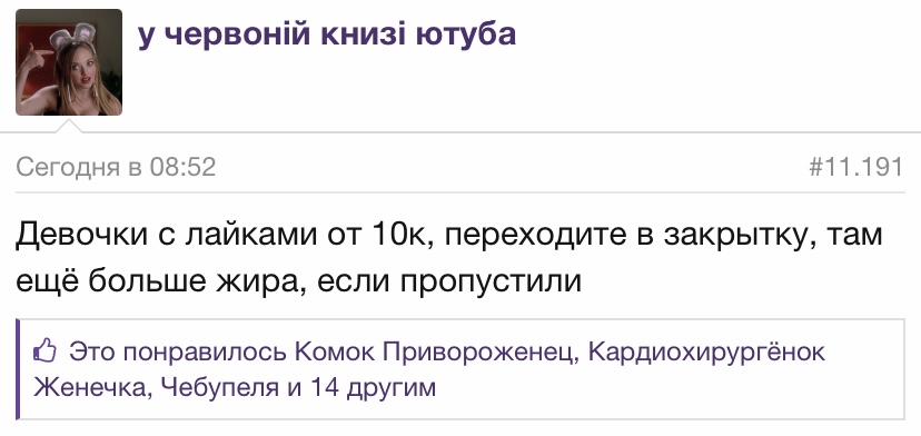 Я так орала, когда на первые большие деньги эти селюки открыли КАЛЬЯНКУ, где потом проводили СЕКС-ВЕЧЕРИНКИ. Но всё ожидаемо заглохло, потому что они не пызнесмены, а шуты-блогеры.
