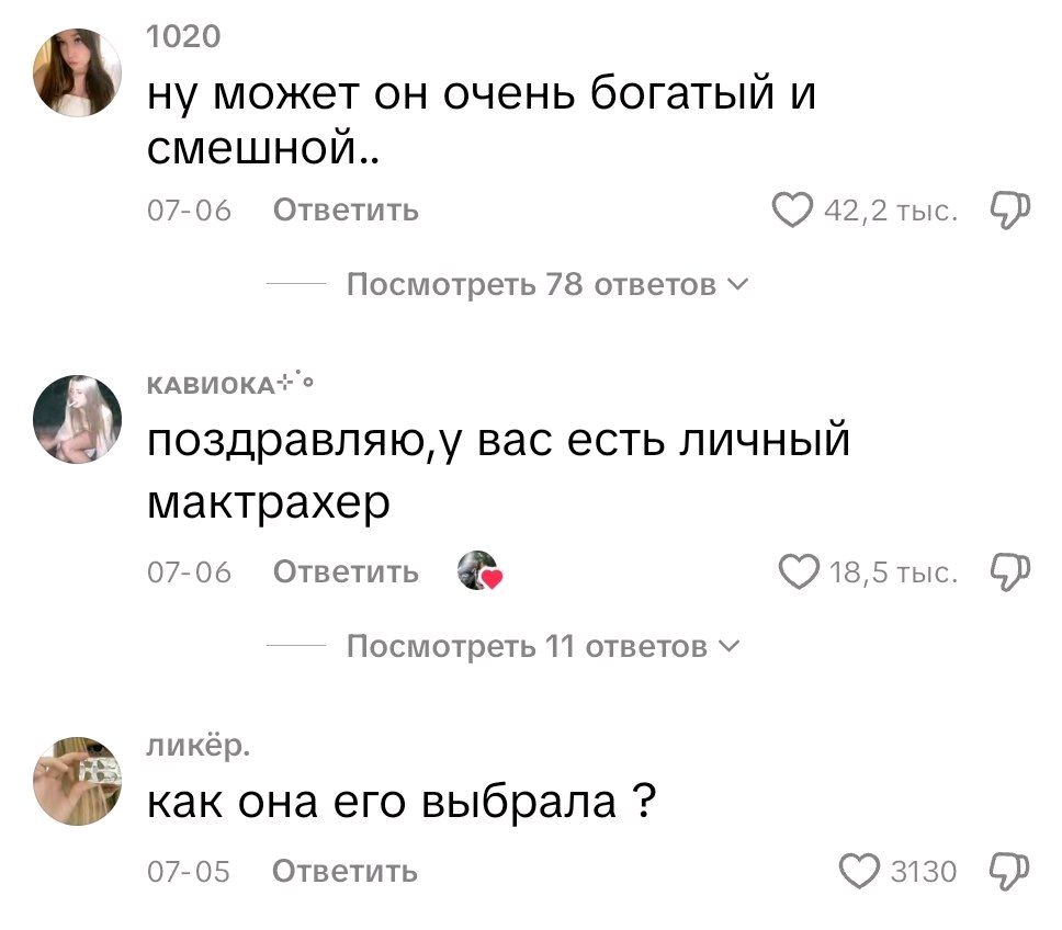 Просто сказали, что она позерша и найдёт в итоге богатого чела чтобы выйти за него замуж