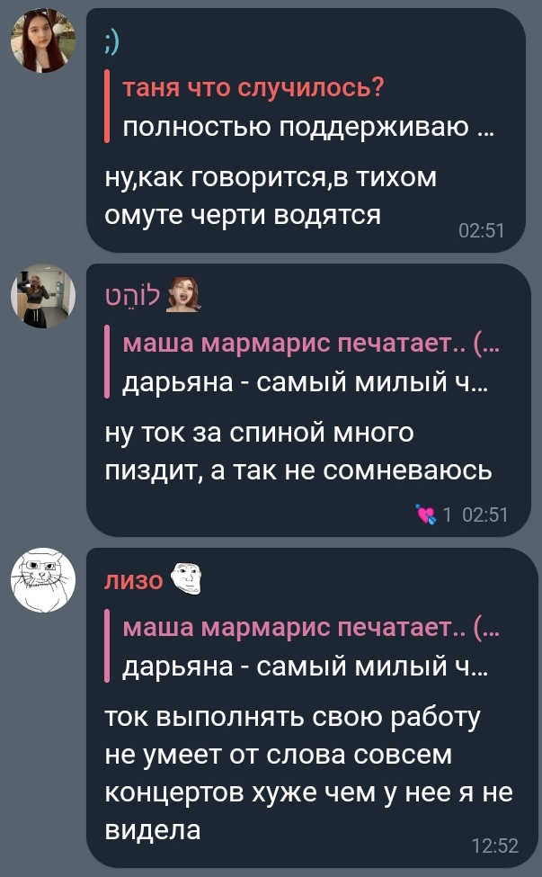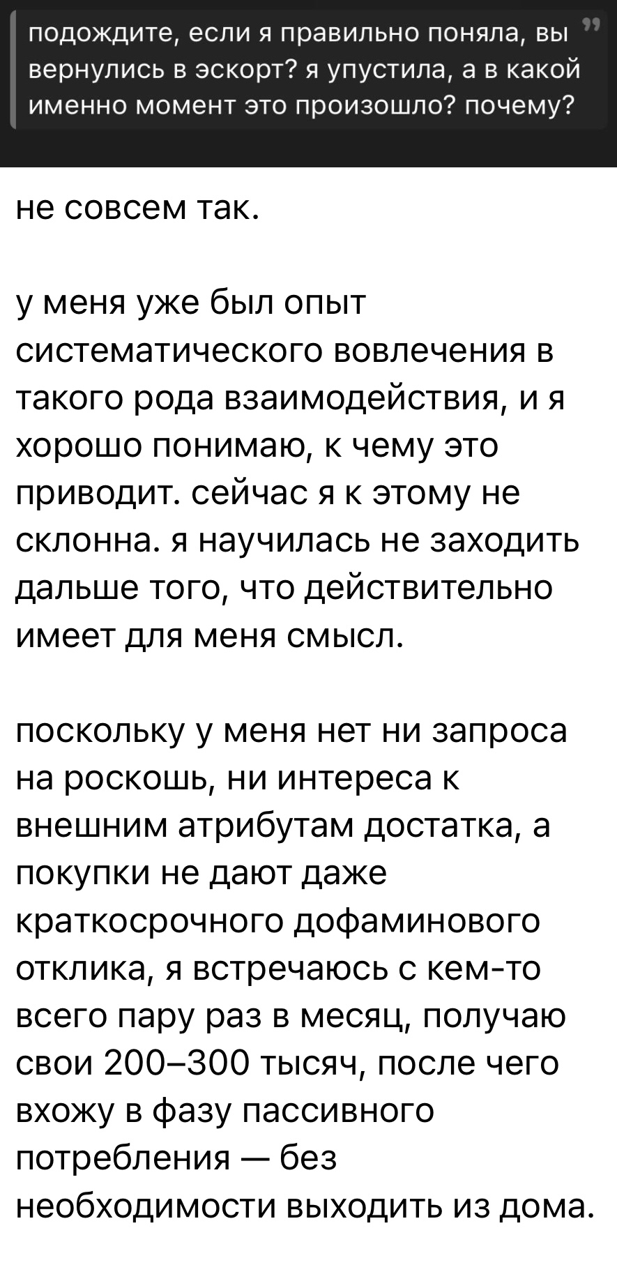офк ситуация для неё вин - и деньги получила, и в благотворительность ушли. но своего она ничего не отдала (а деньги которые ей задонатили её, всё, точка), чужими руками всё. молодец конечно что нашла способ чтоб деньги пошли на благотворительность, но позиция "я не буду делать что-то что не понравится человеку который мне много задонатил потому что вдруг он больше не будет мне скидывать денег" говорит скорее про нехватку эмпатии у неё