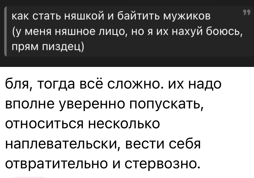 Вот сейчас срэлиас можно было бы разъебать, мб по специальности типа психологии.