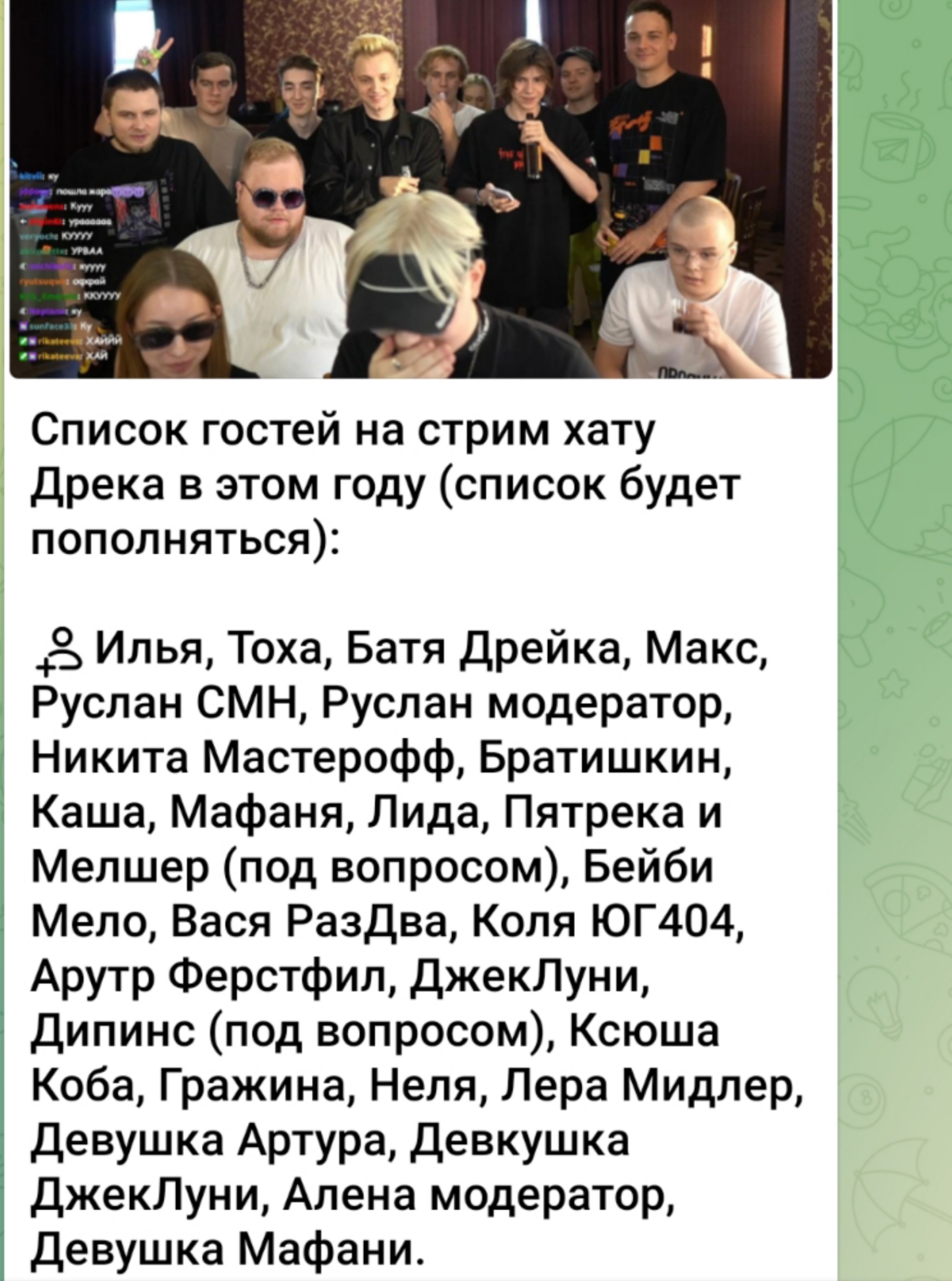 У Дверы какой-никакой стабильный онлайн, она не замечена в крупных скандалах, на прошлом ДР Дрека вела себя адекватно, никому не мешала. Вот её и зовут, как массовку, чтобы другим девушкам, которые идут плюс один к друзьям Куколдрека было комфортнее. Не вижу там никакой теории заговора против пиписинов.