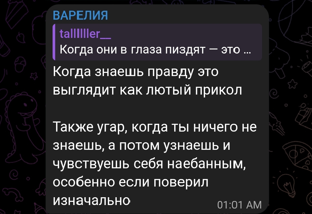 >>6223125 ахуй, я думала там очередная аля нейронка или грим, а он реально резал что-то. так ещё и тян свою обвинил, которая вроде как ребенок совсем, даж школу не окончила