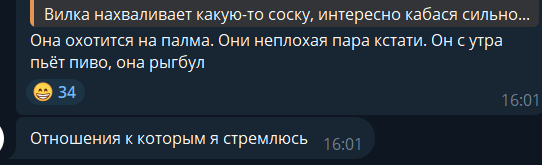 такая же стори с тян у которой всем не очень гуд с пищевым поведением и масиком который все ей оплачивает(от поездки на мальдивы до сыра чечел который она в обе щеки хавает) она все сидит на массе и затирает про то какой он у нее идеальный и как ей с ним повезло что он лучший на свете и бла бла(при этом не отказываясь самой целоваться с нежной пиписинкой чтоб потом последняя этими снимками все стены хаты своей увешивала) прям как у дарьи эдуардовны с дед блондой тоже везде сосались ходили хотя обе в отношениях были на тот момент а мазику и похуй как будто на нее совсем но как будто любит по умолчанию свадьба через сто тысяч лет которую кобан так ждала бритье налысо и дальше вы сами поняли