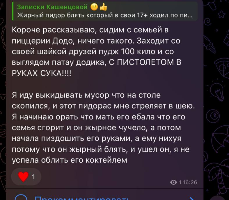 >>6216280 Ну если честно, то я тоже. Но блядь. Отсутствие жира напрямую в Психашина ещё могу понять, все-таки мстительный он, да и греет чувство прежней "дружбы" наверное. Но вот Шлюму доксить жирком точно можно и нужно. Она по-любому за все время натварила и наговорила хуйни в Дверину сторону со всех сторон. И не только Психашину, но и их общим знакомым. И вела как тварина, чтобы заполучить питательный.