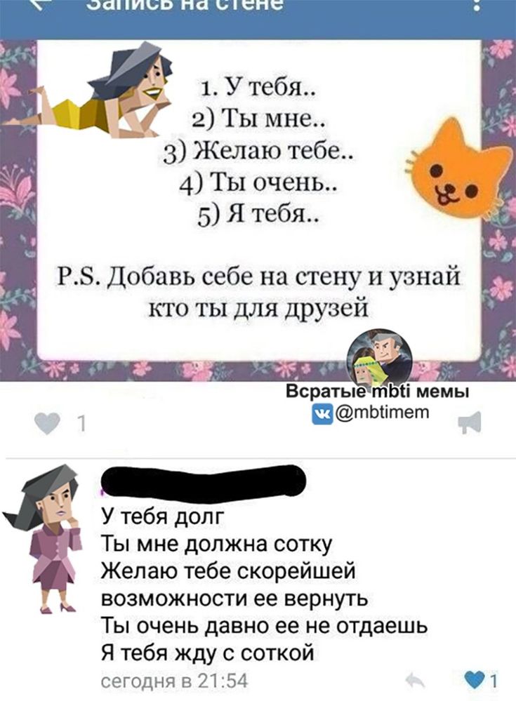 >>6203830 Я автор изначального поста про друга-долбаеба, а не она, но могу показать свой, выведенный путем проб и ошибок, способ взаимодействия с такими кончами.