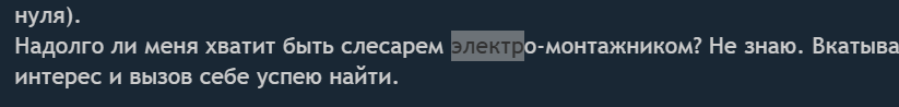 >>6221652 Во-первых, как уже сказали, слесарь и электрик — профессии разные. А во-вторых, по факту, я ни тот и не другой. По прибытию на местность выяснилось, что я буду вообще третьим вариантом и это мне на руку оказалось. Обед только кончился, а я перекрыл весь день и вышел в переработку, что оплачивается дополнительно, при этом не выходя за пределы временного графика обычного рабочего дня. Так что, будь добра, заканчивай пиздеть, словно ты в соседнем отделе сидишь и всё про меня знаешь. Ни ты, ни тебе подобные — не знаете ни-че-го, а вид у вас такой, словно за мной наблюдаете, как бабки в телевизор — за ток-шоу, не отворачиваясь.