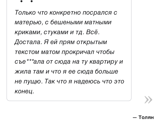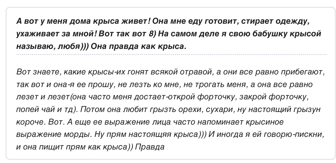 какие бабки на багине ёбнутые все таки. зашла в их палату, а они там на целую страницу приебались к обсуждению про "отвоевание земель" и завели свою шарманку бесконечную про вату. пиздец.