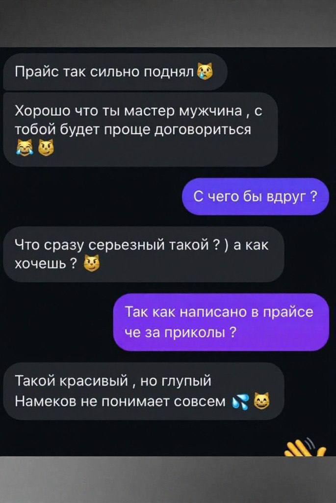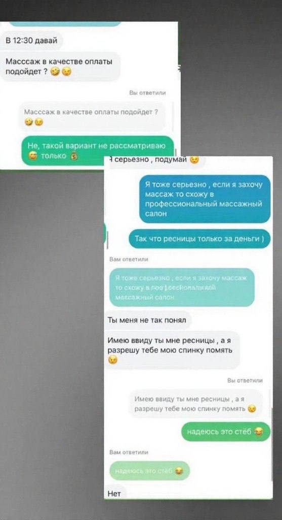 Да я делаю скидку на то, что она зелёная сопля ещё относительно, 20 лет только исполнилось, ну и хотя бы не стала дальше унижаться, а то и такие истории бывают.