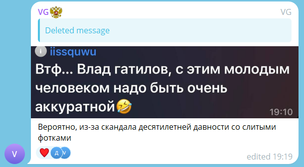 Блин, мне кажется надо было как-то помягче. Типа скинуть его фотку с землеройкой и фотку с блондой. И написать тиктокерша землеройканейм встречается с бывшим парнем gtfobae, который слил в сеть ее интимные фото. Возлюбленные познакомились в дейтинг приложении и пока что очень счастливы, судя по постам землеройканейм