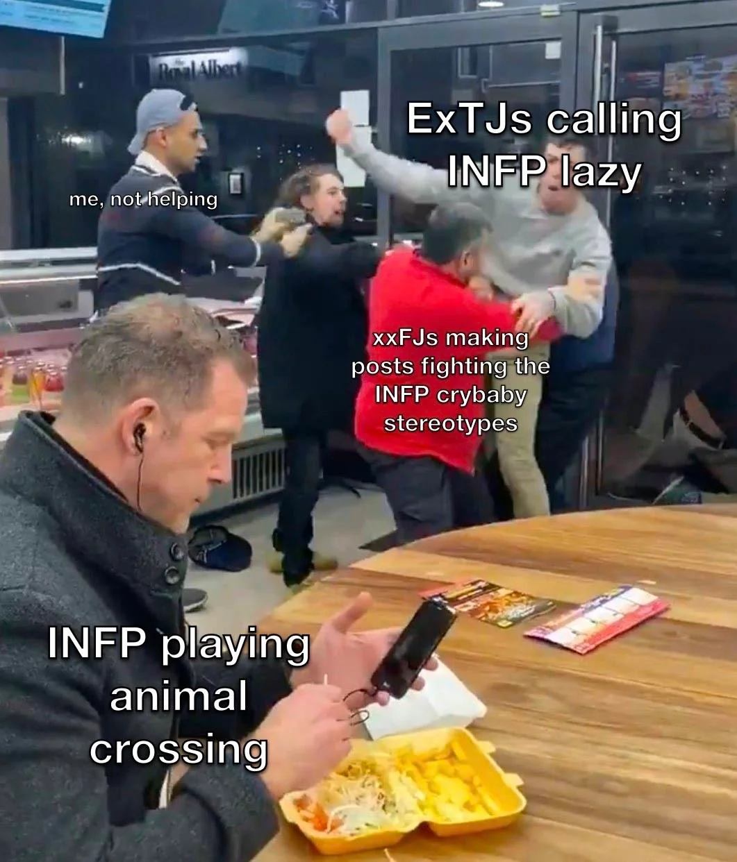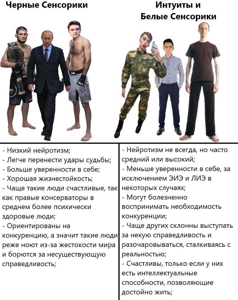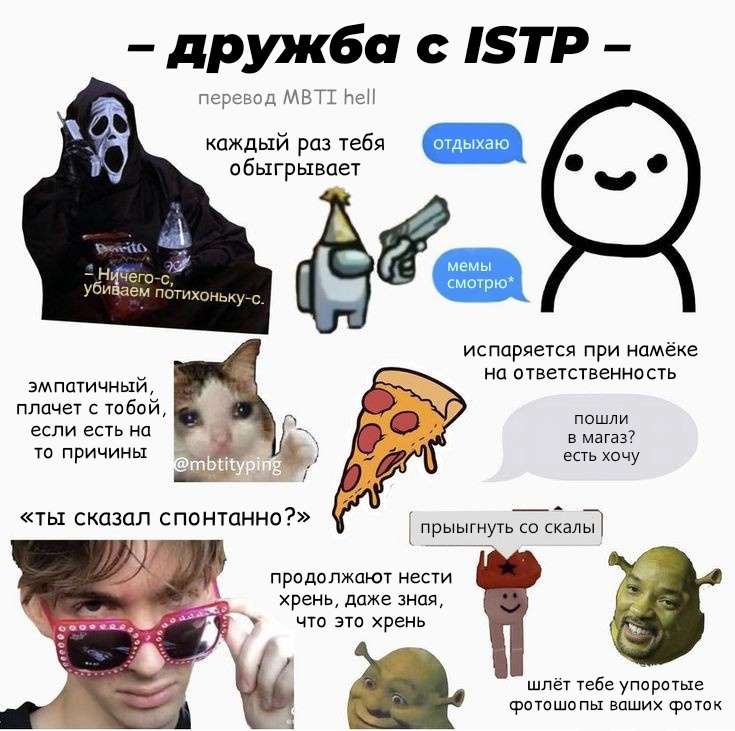 Мне было бы больно делать то, что исфп довольно легко умеет. А то что больно делать я не делаю, 1 раз допустим получается, бодрит, а потом ментальный блок и упадок сил. Исфп делает, а не думает. Я большую часть жизни потратил на лежание на диване и сидение на жопе, в мыслях про то как было бы круто что-то сделать, а делал всегда довольно мало, в остальное время занимался дичью. Сейчас вот даже работать впадлу - когда был перспективным, проебывал жизнь на хуйню, а теперь за это обидно и не хочется тратить последние силы там где уже проиграл. Там где я моментально сдамся и честно признаюсь, исфп скорее всего не сдастся. В общем, огромная разница между исфп и инфп, ошибиться невозможно. У isfp которые попадались нет Ne, и скорее всего Ti. Наверное, вас сбивает с толку что они ведут себя так же как infp иногда. Но, думаю мыслительные процессы у нас очень разные, поэтому я точно смогу сказать есть ли у человека Ne или нет. Isfp получает информацию из первых рук. А мне никто ничего обычно не рассказывает, приходится все узнавать самому либо навязываться, от чего давно устал.