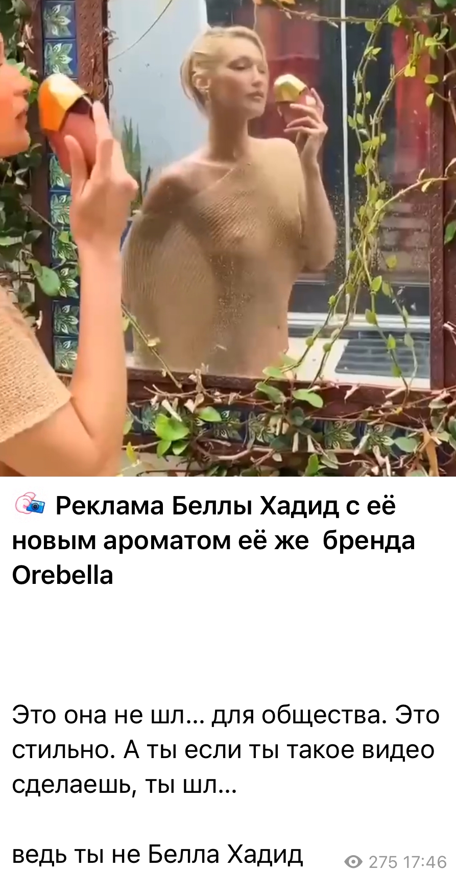 Букаха в тг ноет, что не может светить сиськами из-за давления общества и сравнивает себя с Беллой Хадид. Вот только Белла не показывает сиськи за 1 доллар на бусти