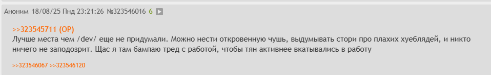 >>6241291 Ты впервые на Дваче что-ли? Тут 99% тредов- это разгон говна на вентиляторе. Дискуссии уровня б крылатая фраза думаешь откуда появилась? Прибавь это к тому, что тема довольно острая, ещё и сейчас тут бегает какая-то чуханка и срёт без остановки пастами радфема. >>6241297 Я, кстати, не в России живу, так что это заговор масонов и евреев, мировая хуйня.