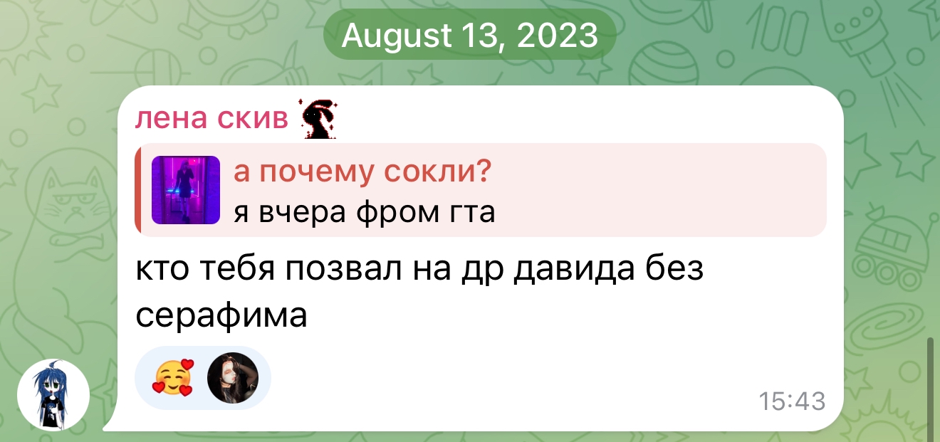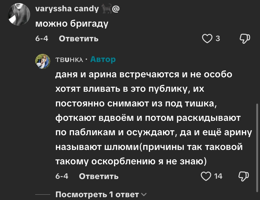 С мелочи пузатой из тт и тг пиздец смешно иногда, они решительно определяют вместе ли Хряк и Арзушка по их якобы парным веревочкам на шеях... или каким-то тоже парным браслетам