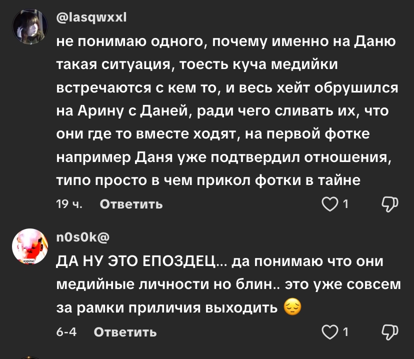 В человеке можно увидеть привлекательность не только за нарощенку и губ за контурок. Очевидно, если бы Двера продолжала ныть о несправедливости жизни, а не пошла бы лампово проводить время на др дрека, то никто бы ей особо комплименты не выписывал.