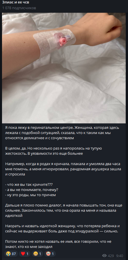 Охренеть, как жалко элиас. В основном выкидыши на ранних сроках бывают, а тут видимо вызывание родов, это не аборт даже, ей пришлось рожать заведомо мертвого ребенка