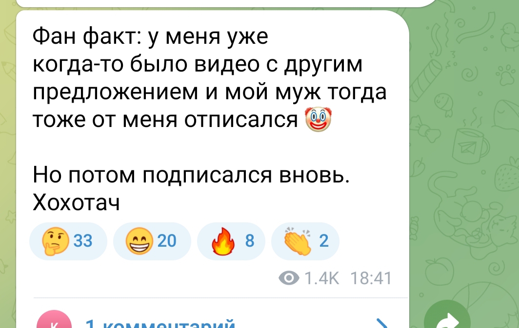 >>6250256 Хуйломов снова вставил свое очень важное мнение. Что-то я не видела, чтобы он так же активно комментил посты своей жёны, чмоня. Ну а эти попрошайки как всегда, не разобравшись запостили. Представляю как у них взорвалась бы жопа, если бы они узнали, что Кузьме тогда 3 раза по 100к задонатили)) космонавты увидели бы алое зарево над Сербией. Ну и да, эта реакция Кузьмы была шуточной, он по-другому реагировал