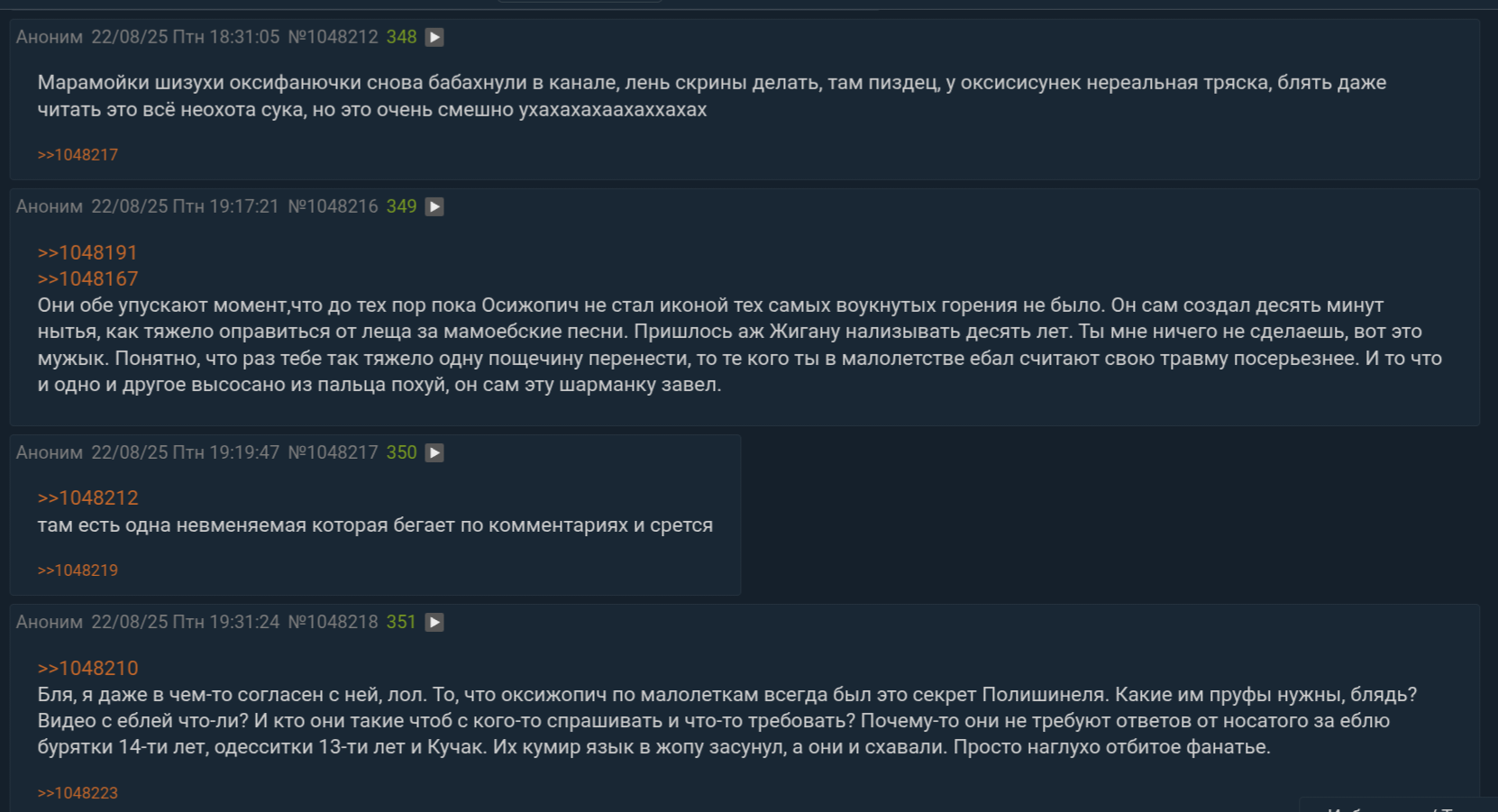 АХАХАХА бля какой же жабагадюкинг. Два нахимиченных клоуна женоненавистника топят друг друга. Любо дорого смотреть. Вот бы они все между собой пересрались. Какие же хуи сплочённые, брат за брата жиесть