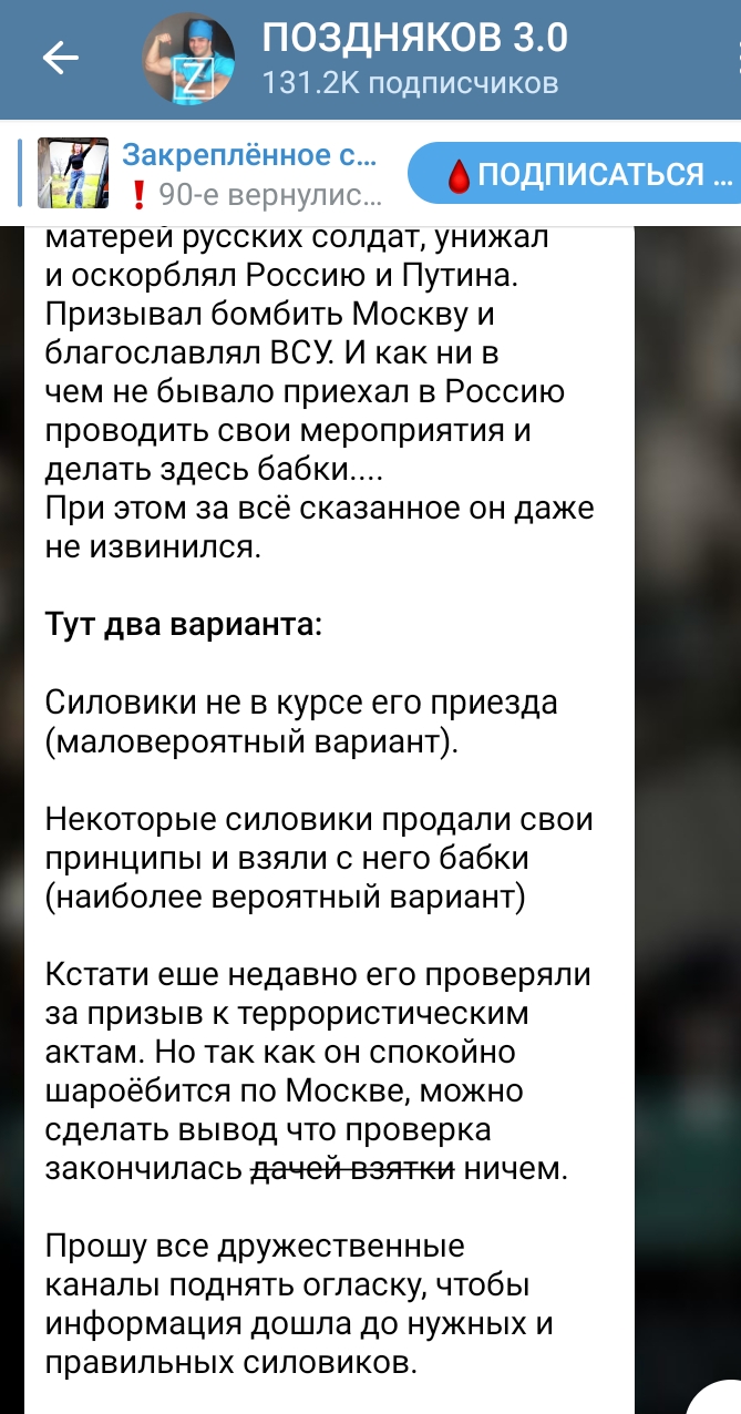 >>6250604 Я не понимаю, как можно собрать такую аудиторию значительную, при этом будучи абсолютно отбитым дебилом. Ну полный дегенерат же, если после всего, что напиздел, реально решив вернуться в Россию. Его за пиздеж на Бортникова и Бастрыкина сейчас набутылят лет на 15.