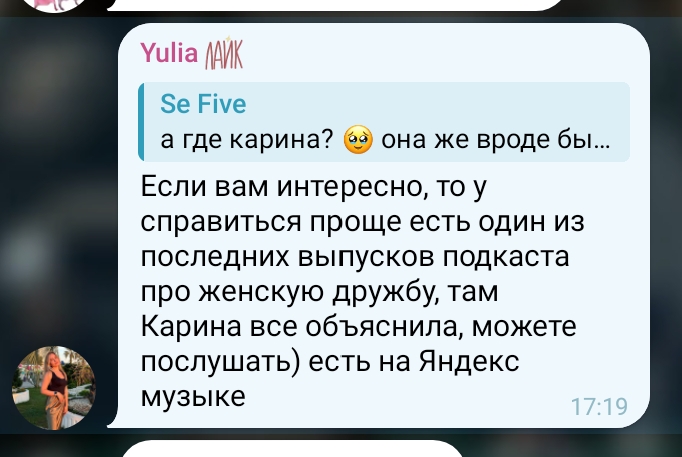 >>6250623 С Дристоминой они с 2023го года не общаются. Кищучка всегда была где-то около, но не близко. Они ещё с юности знакомы. Видимо за последний год сблизились. А про разрыв дружбы я в комментах читала, что Дристомина рассказывала таки в подкасте. Но у меня пока руки не дошли послушать
