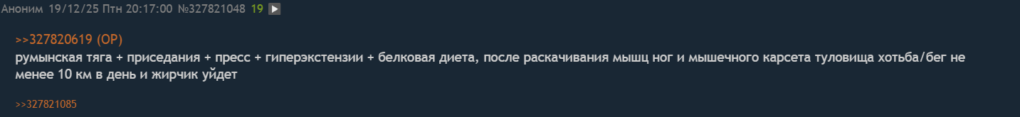 >>6374282 Тащемта секретов тут и нет. Чтобы похудеть нужен дефицит калорий. То есть нужно потреблять меньше калорий, чем расходуется организмом. Жир также не сжигается локально, то есть упражнения на пресс не более эффективны, чем например бег, при условии траты одинакового числа калорий. Более того, упражнения на пресс на самом деле могут сделать живот более заметным, так как под слоем жира вырастут ещё и мышцы.