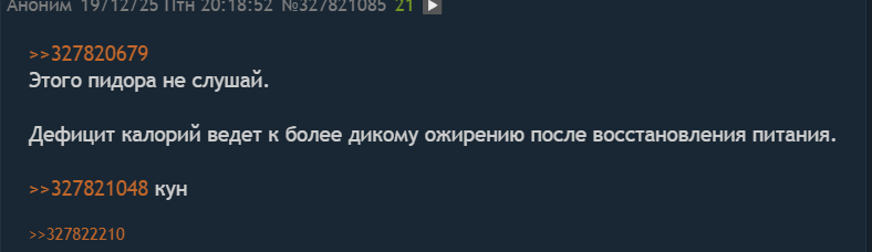 >>6374358 Я не сис. Не знаю что тут комментировать. Смотря что там подразумевается под "дефицитом калорий" и под "восстановлением нормального питания" Я скорее за коррекцию питания а не за какие то этапы, которые шизик видимо считает что надо перетерпеть. А потом возвращается к хрючеву