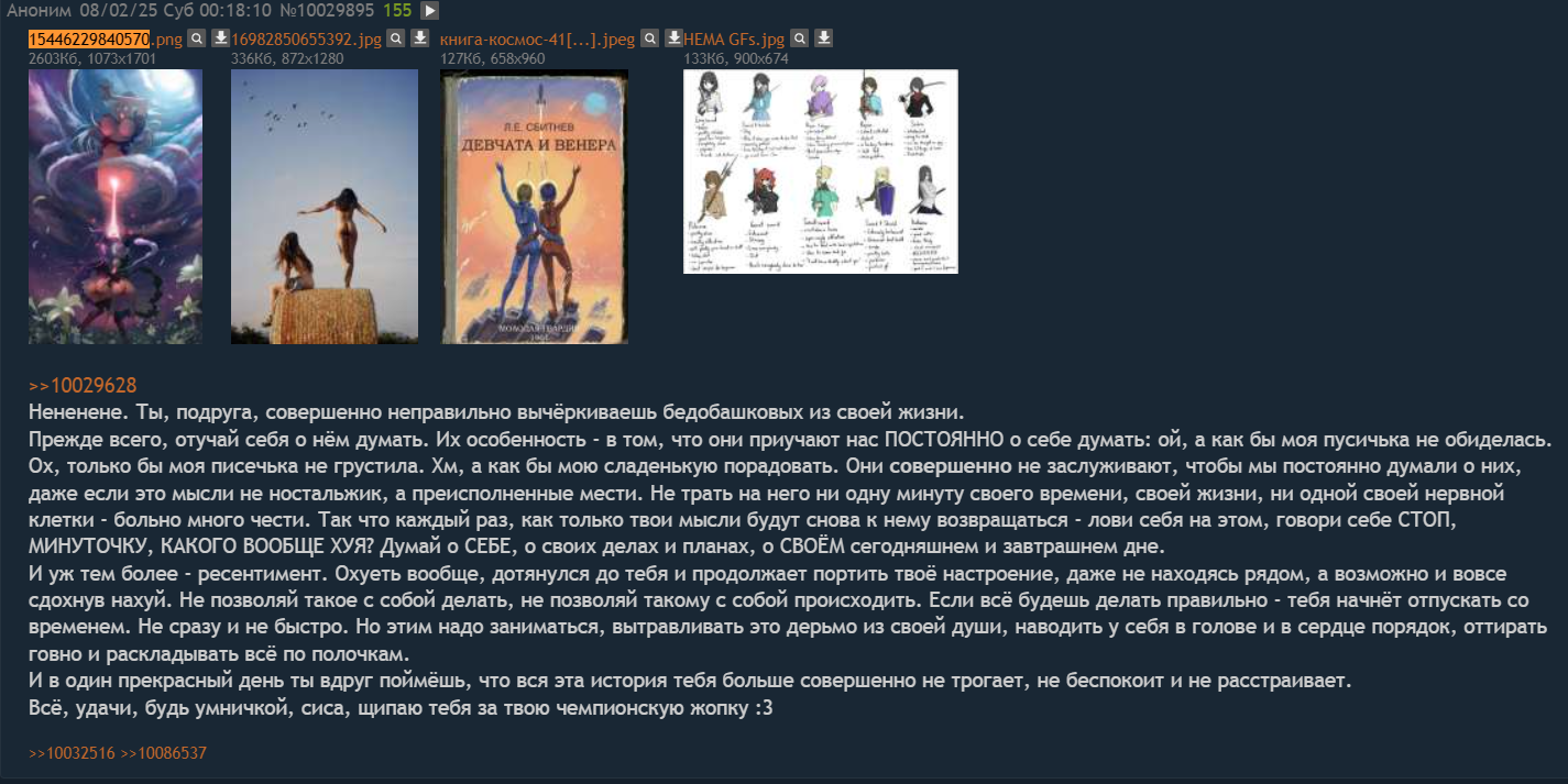 кабан бы был со мной если бы я не влюблялась и не мечтала о персонажах всяких ищ игр фильмов а мне так трудно от этого удержаться, он поэтому меня бросил. ещё я интернете познакомилась давно с куном с ним было вроде лампово но пришлось дропнуть общение из-за кабана и с того момента я думала что надо как нибудь к тому вернуться когда нибудь написать спросить как дела, я думала когда с кабаном расстанемся я напишу ему, уже прошло целых 5 лет и я думаю что я вооьще не знаю того чела и он как идея фикс и незакрытый гештальт как говорят, а я могла бы забить на все и быт с кабаном и ирл который любит и заботится с которым комфортно но все равно все скатится когда я буду отдаляться там или опять вспомню того чела вдруг, а с кабаном мне ну как то не так и мне было стрессово ирл играть в отношения. а если я тому челу напишу окажется там что он какой нибудь скучный и кринжовый на самом деле при близком рассмотрелиии или ирл стрем, и я буду одна не хочу быть одной но так хуево из за этого всего, хотя это больше для биопроьлемного пост я бы с любыми трудностями мона справиться если бы я не была одна, было бы похуй на все, а так быть одной работать за 30к в пятере с грузом сожалений и без будущего это ужас