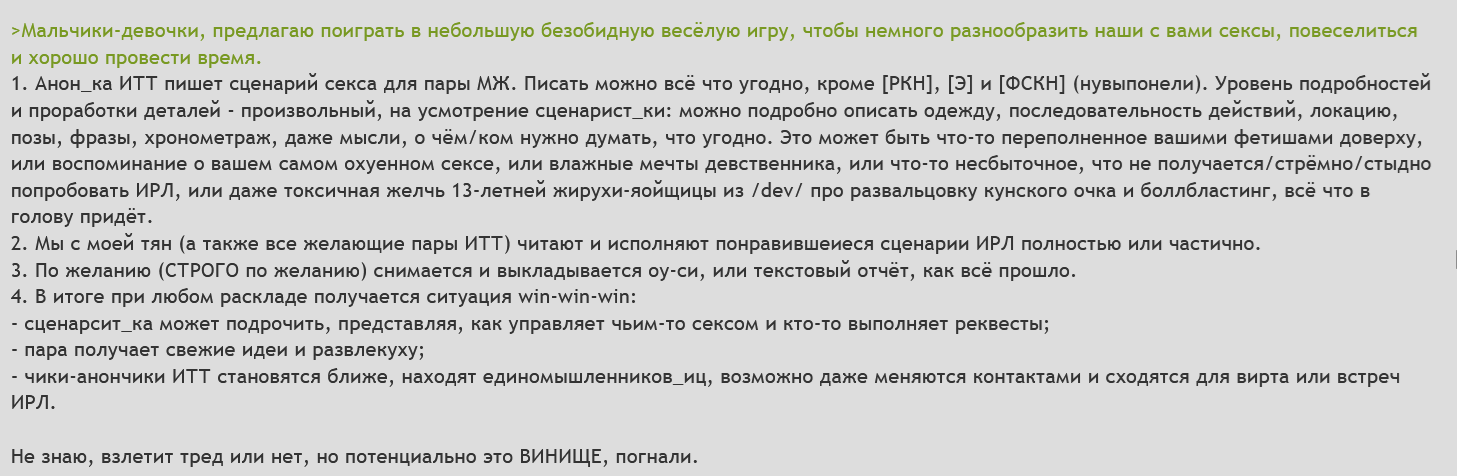 >>6427824 Это звучало как в типичный тейк Олега, но с одним нюансом, Олег не говорит что он кого-то ебёт, он же подстилка, поэтому ебут его, а именно ебать самой это говоршь ты