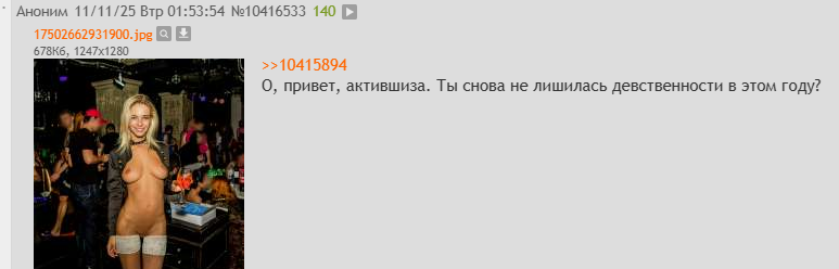 Кстати забавно что эта жади, которая рвалась от того что у тян есть фетиши и они могут получать удовольствие от секса. Оказалось чуханом, который в б писал, что женщинам надо отрезать клитор и выдавать замуж в 9 лет.