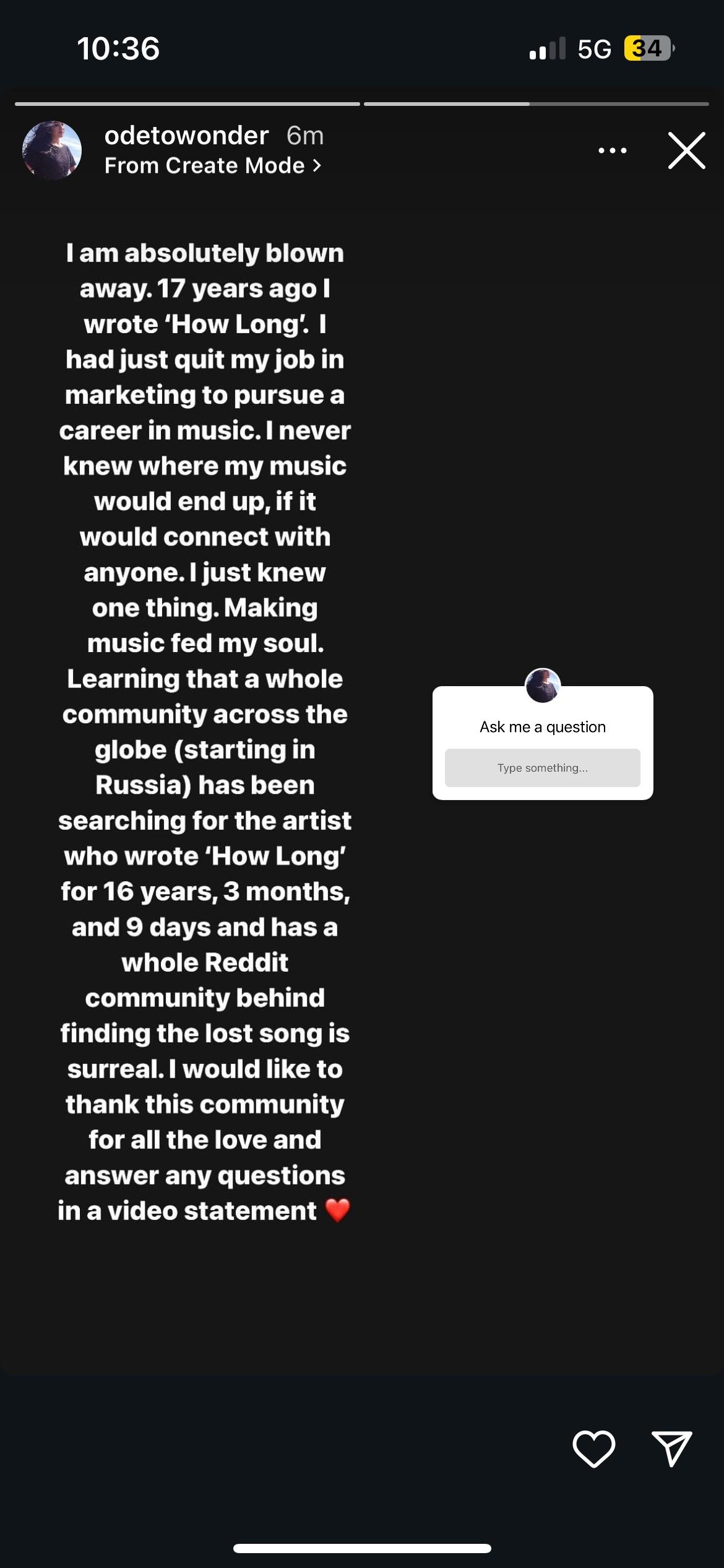 Песня с интересной историей, которая на протяжении 16-ти лет считалась лост медиа. Всё началось в 2007-ом году на сайте, посвящённом опознанию песен по отрывкам или тексту, когда один пользователь выложил два отрывка из песни, общей продолжительностью около минуты. Вот эти отрывки: https://www.youtube.com/watch?v=2lu1gRot5NI По стилю песня представляет собой поп/инди-рок с меланхолично-ностальгической атмосферой как в некоторых треках The Cranberries или Boa. Песню не смогли опознать, а пользователь впоследствии сказал что эти отрывки использовались в качестве фоновой музыки для меню на пиратском двд-сборнике с фильмами. Прошло 15 лет, за это время в сети периодически появлялись запросы о поиске этой песни от разных людей, но они ни к чему так и не привели. Около полугода назад о песне узнали пользователи реддита и начали активный поиск. Высказывались различные предположения о том, что страной производства может быть Великобритания, впоследствии также появилось предположение о том, что страной производства может быть США или Канада - что впоследствии подтвердилось. Также высказывалось предположение о том, что песня могла быть использована в каком-нибудь сериале или фильме - что тоже подтвердилось. Около месяца назад были найдены два пиратских двд-диска, на которых были найдены ещё два отрывка песни, правда, один из них был просто более качественной версией уже имевшегося отрывка. https://www.youtube.com/watch?v=nsBoJkaLzkI Как оказалось, отрывки из песни встречались на пиратских двд-сборниках с фильмами/мультфильмами, выпускавшихся в России. Возможно, вы даже слышали их на одном из таких сборников. В процессе поиска песни было найдено много малоизвестных групп со схожим звучанием, но среди них не было искомой. И вот, сегодня песня наконец-то была найдена - по предполагаемому названию пробили базу данных сайта сообщества музыкантов Канады. Песню написала канадская певица Паула/Пола Толедо в 2004-ом году. В 2005-ом году она выпустила альбом, в который почему-то не включила эту песню. Официально песня никогда не выпускалась, но была использована в сериале и в закрывающих титрах фильма 2005-го года - из которого пираты и стырили её. Кроме того, песня полностью прозвучала в одном подкасте, из которого её по итогу вырезали и выложили в свободный доступ, тем самым закончив 16-ти летнюю эпопею о поиске песни неизвестного исполнителя. https://www.youtube.com/watch?v=gE5GTgyT_yE Когда обо всём узнала сама Толедо, то была приятно удивлена таким интересом к её творчеству и даже решила записать видео, в котором ответит на вопросы пользователей.