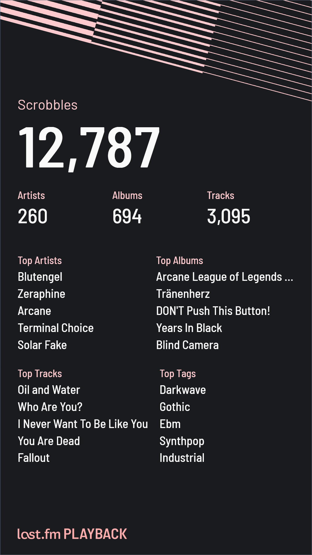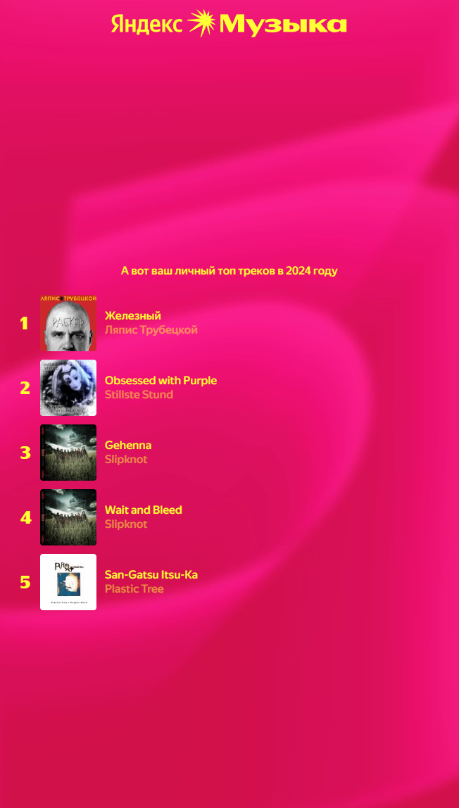 До сих пор слушаю то, что зашло в подростковом возрасте (и то, вся эта музыка в основном выпущена лет 20 назад, еще до моего рождения лол). Как перестала сидеть на last.fm пропал азарт поиска новых групп. Сейчас просто умиротворённо открываю плейлистики под водочку настроение