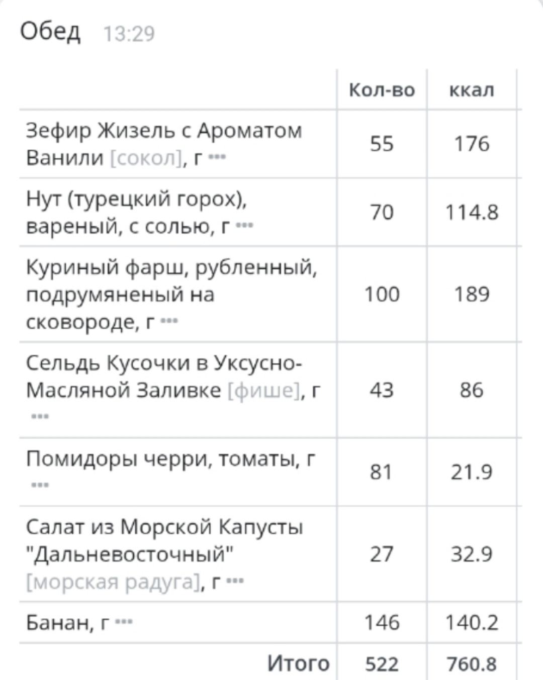 Пикрилейтед мое усредненное питание за сутки, это конкретно за вчера, в целом отчеты с фотографиями сильно помогают держать себя в руках, рекомендую.