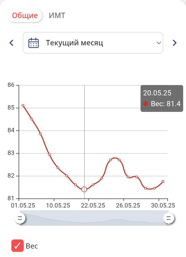 >>6129878 -1 кг на поддержании за май здесь! По активности было всё не очень хорошо из-за диплома, плюс вылазки в бар тоже были, но как приятно, что организм не пухнет с этого в момент и прогресс не стирается. Думаю, с июня снова вкатиться в 1300 + потраченные от прогулки калории, так вполне комфортно