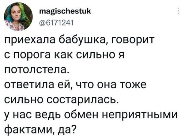 Я не понимаю, как люди видят, когда кто-то похудел/потолстел. Мне мать все время говорит вот, мол, ты пожирнела или ты исхудала. А я смотрю в зеркало и вижу одну и ту же тушу, которая не меняется. Я бы, конечно, увидела изменения на фото до и после, да и то если бы там была разница кг в 30, я же в пределах +/-7 кг всю жизнь набираю и сбрасываю по естественным причинам. Один раз я только заметила изменения, когда сестра бабушки из-за рака иссохла до костей. Когда мои коллеги пиздят друг с другом про вес, вот тебе бы пару кило набрать или сбросить или ой, ты что-то похудела, я не понимаю, как они видят это без объективных показателей (вес, замеры объемов). Может у меня что-то с восприятием? У вас такое есть?