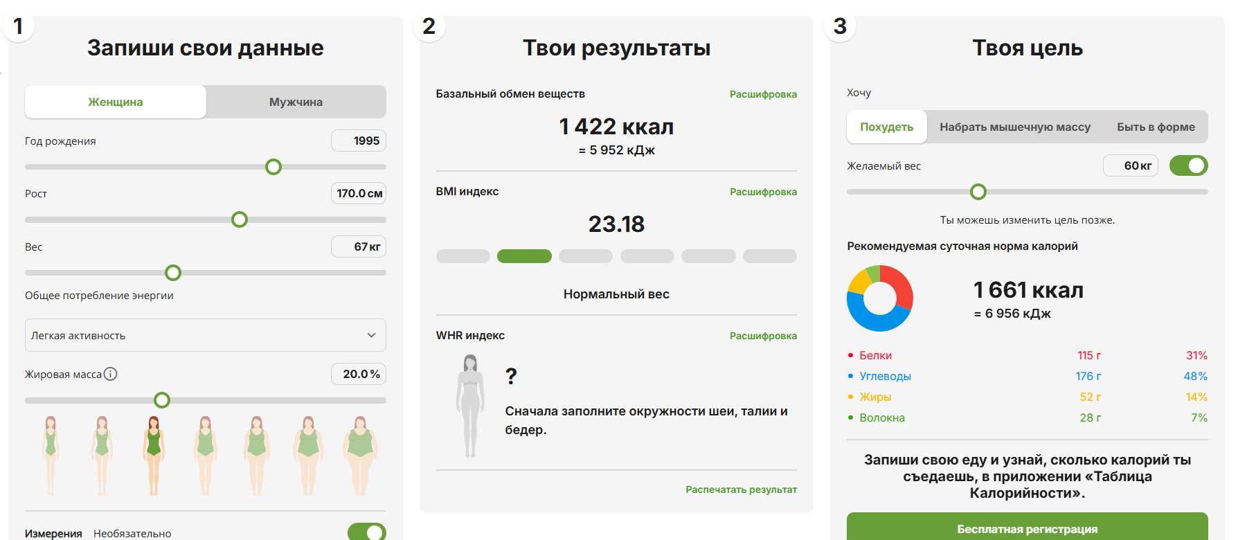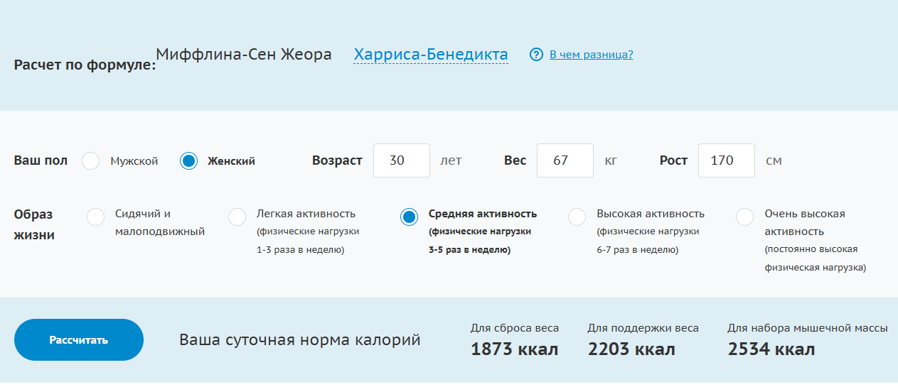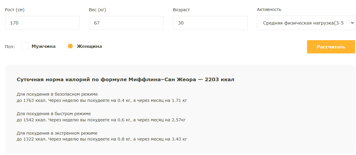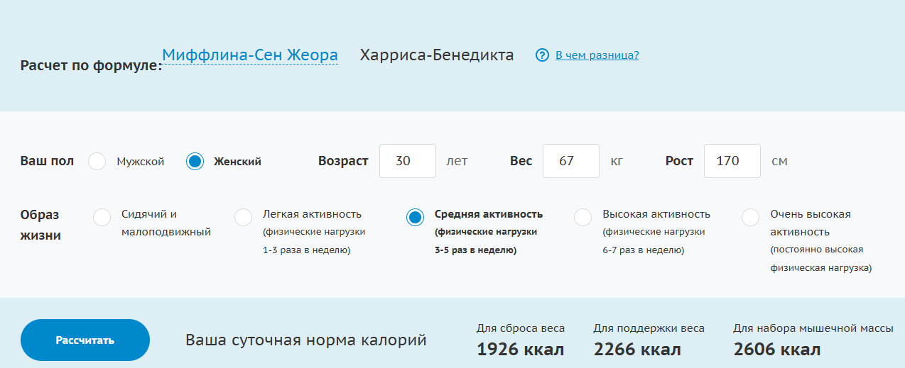 >>6251143 Странно, я посчитала в боте по ее параметрам ей, чтоб худеть всего лишь на 1 кг в месяц надо есть 1350 калорий. И это если активность действительно умеренная, а не легкая. Где ты берешь такие огромные цифры? Есть примеры тех, кто похудел на 1800 имея норму ИМТ?