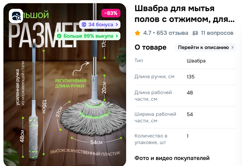 Верёвчатая смешная швабра с отжимом. Полный прикол, потому что не надо трогать мокрую часть руками, не надо покупать никакую дорогую отдельную сИсТеМу для мытья полов, сама насадка съёмная и стирается.