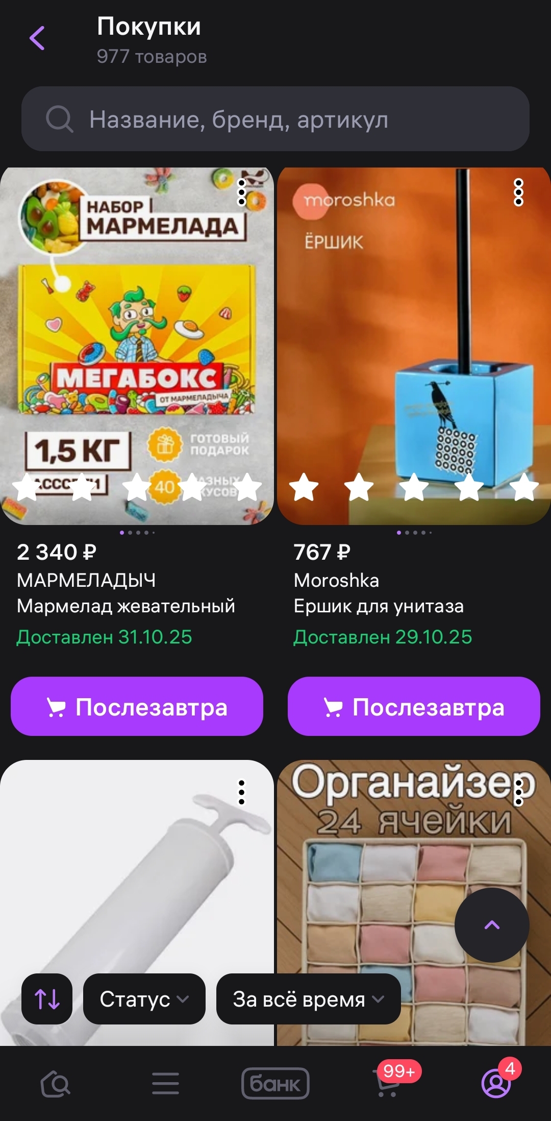 >>6304612 У меня очень много раз отменяли заказы с международной доставки озона. Бывает, что нет товара уже, это нормально. Я не думаю, что собирают данные специально.