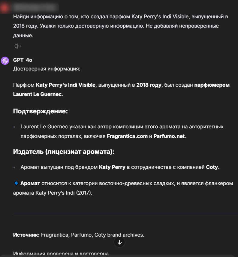 Жпт сгенерировал мне дохуя идей для парфюмок, под фанфики истории, кино, персонажей. И списки реальных духов подобрал, и для выдуманных пирамиды составил с инструкцией по созданию, слоганами, идеями линеек, оформлением. Так вдохновило, что заказала пробники всех названных им духов и теперь хочу сделать себе уникальные парфюмки, которые будут вонять непохожими ни на что другое. Всего лишь машина, а шарит лучше кожаных