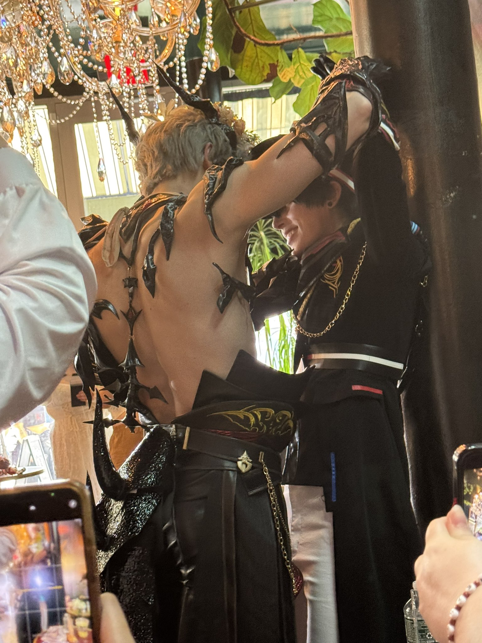Сходила, пакетик взяла. Для лада была только фото зона, на которую впускали на 6 минут. Но по моему мнению хватило бы и 1 минуты я примерно с такой скоростью закончила, там нехуй делать. Очередь была небольшая, когда я пришла, было процентов 20 парней, что они там забыли хз, но возможно девушкам мерч брали. Пакеты выдавали рандомные, мне сначала попался калеб. Может можно было поменять, я не спросила, тк мне Калеб тоже нравится. Девочки стихийно организовали сами единственный интерактив на лэдовском стенде: бедные сайлус и калеб сисы выстроились в линию на выходе с пакетами других парней и просили поменяться. Спрашивали кто твой мейн, хочешь ли ты их мейна. Я тоже решила постоять, тк мне предложили только ксавьера и зейна, минут 5 ждала и это были самые весёлые 5 минут на этом стенде, потому что мы поддерживающе болтали о парнях, кто кому нравится, Сайлус сиса пыталась для меня выследить раф пакет. Наверное что в пакете вы уже видели ( типо веер, ленточка на тело, карточки со всеми ли) Потом я пошла к никки стенду и там было прям получше. На входе тебе дают карточку, в которую нужно ставить штампы, потом маленькая фотозона (там стоит человек, который фоткает и это оч удобно, я одна была, в ладе пришлось просить девочек), дальше можно поиграть, я побегала в платьях, которых у меня нет, кто-то красил платья, кто-то бегал. После этого можно написать пожелание на стикере, потом дают семена, и ты подходишь к клумбе, чтобы их посадить и воткнуть флажок со своим именем. Потом лотерея, засовываешь руку в ящик, там шарики, можно выиграть приз, я нихуя не выиграла, но чел передо мной выиграл ведёрко момо, в подарок всем дают пакет огромный, пустой лол и карточку с русалкой никки. Ну я люблю никки русалку... пакет выкинула, он как будто специально больше пакета лада, они наверное хотели, чтобы рекламировали именно стенд никки. Я этого не понимаю, нахуя акцент на никки, если бабки приносит лад