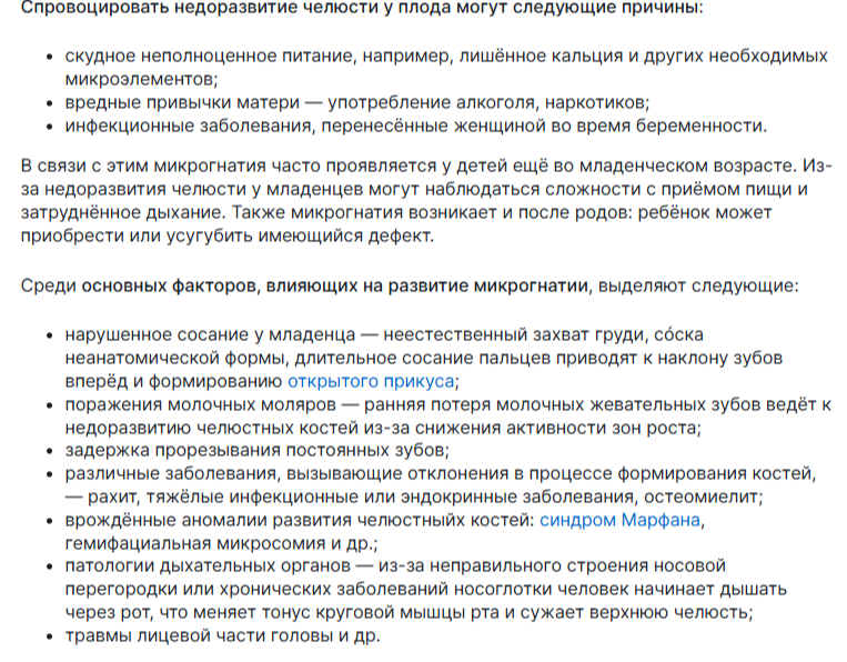 >>6168849 Заинтересовалась, нашла в инете: На сайте написано, что при физических травмах, о которых ты говоришь - будут так же и проблемы с дыханием, так что это невозможно будет не заметить и не начать лечение в период пока еще идет активная фаза роста челюсти.