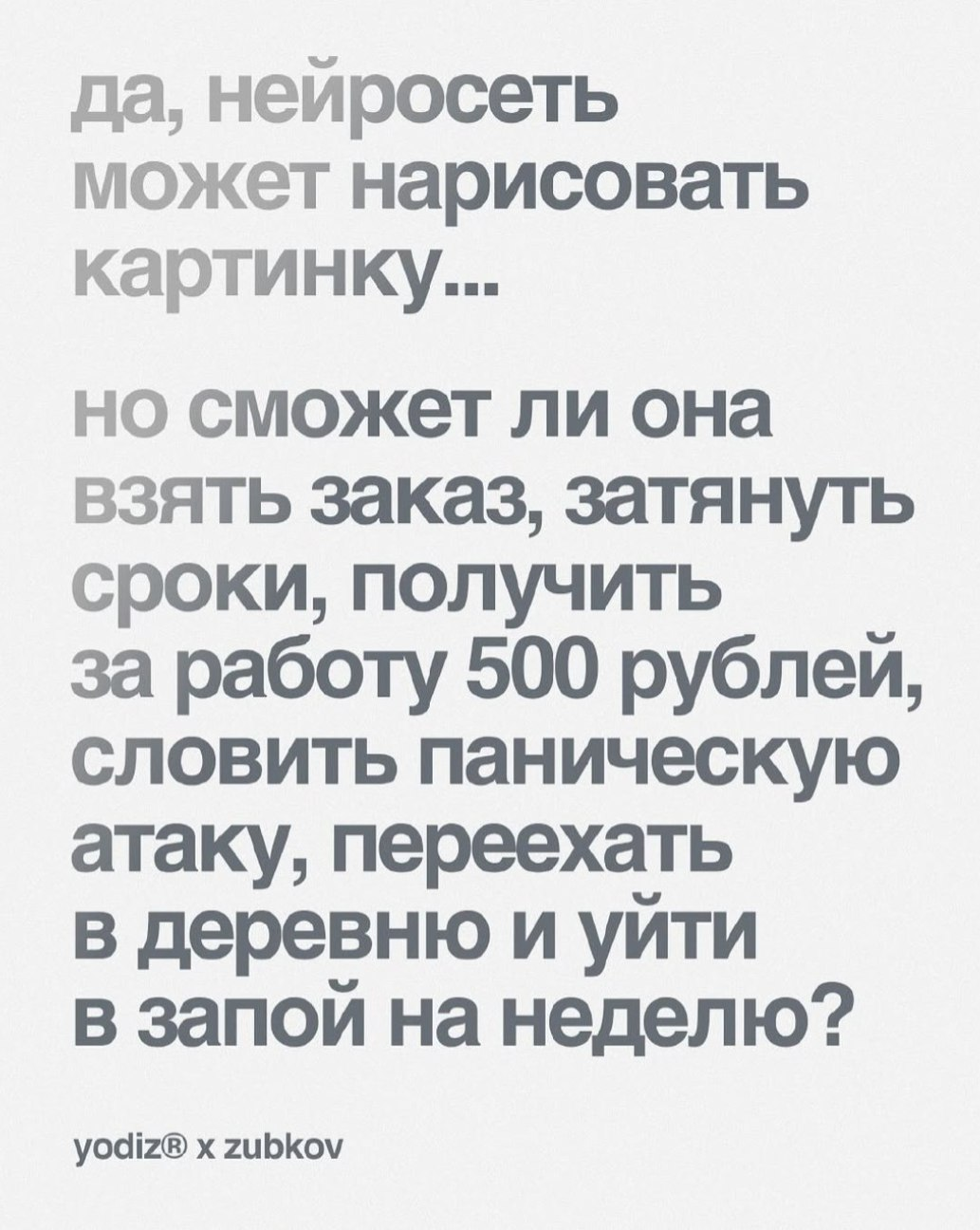 >>6232075 Я раньше следила за одним художником, который пропал из инфополя примерно на год, а потом он вернулся и написал пост, что ему плохо и у него проблемы с вещвами. Так что все может быть, сис
