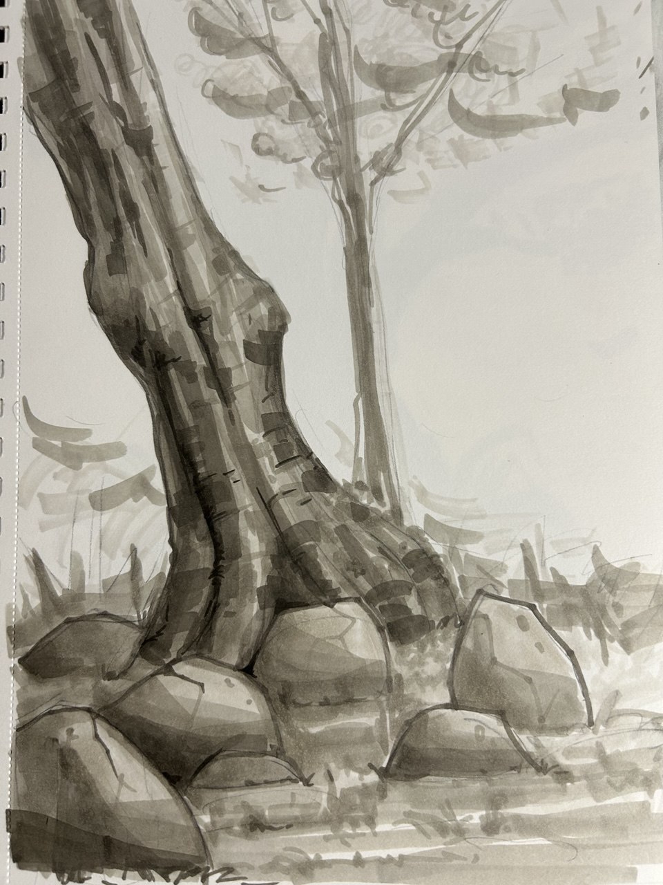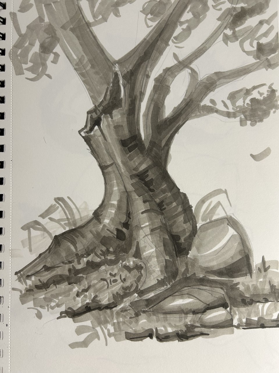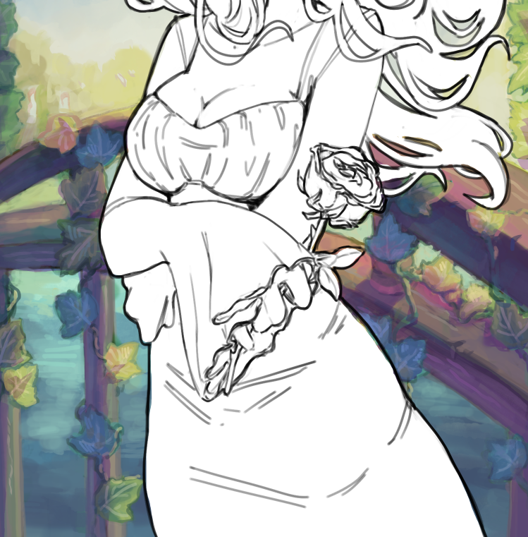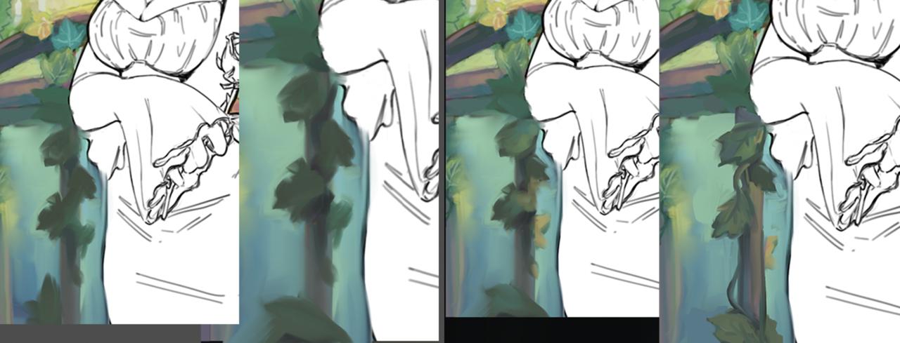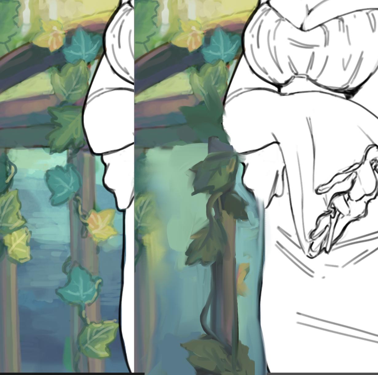 >>6240284 Дык дело в том, что надо рисовать силуэтами, крупными мазками, вырисовывая изначально общую массу, распределяя тон цветом и тоном и только потом частично прорабатывать конкретные листочки, который на передний план выходят, а ты прям выдрачиваешь каждый лепесток, прорисовывая светотень и форму, хотя это не нужно. Плюс у тебя акцентом персонаж, детально прорисованный, если еще и фон будет задроченный, то получится лютый перегруз мимо