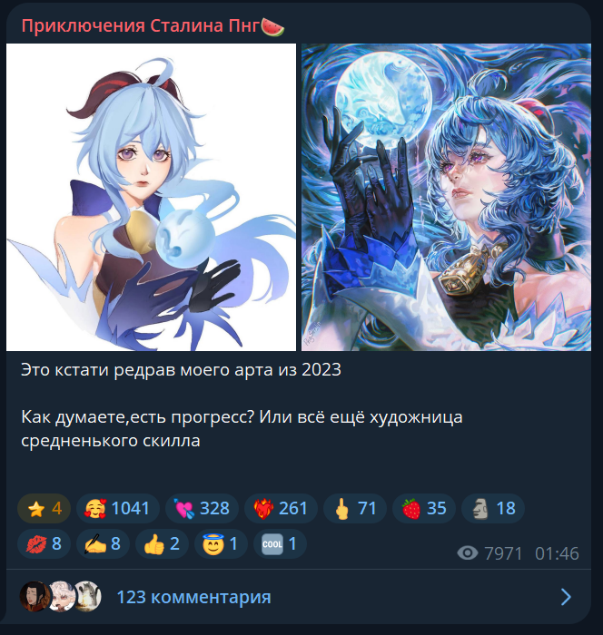 >>6280479 ну я может тоже видела и поэтому когда рисую из подсознания линии берутся, так и получается. я не юзаю рефы или какие-то конкретные стили. я иногда стадила аниме вроде и манги какие-то которые нравились да и мне похуй в общем-то рисуется как рисуется, что я могу поделать