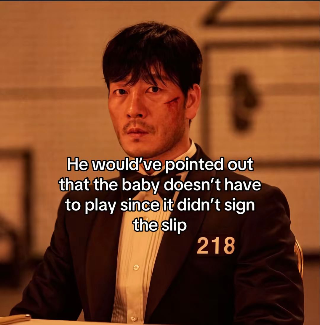 «Я действительно размышлял о том, чтобы Сон Ки Хун остался в живых. Я думал о концовке, в которой он так или иначе выйдет из игры и отправится в Америку, чтобы встретить свою дочь. Поэтому изначально я думал, что человеком, который увидит американскую женщину-вербовщицу, будет Сон Ки Хун.