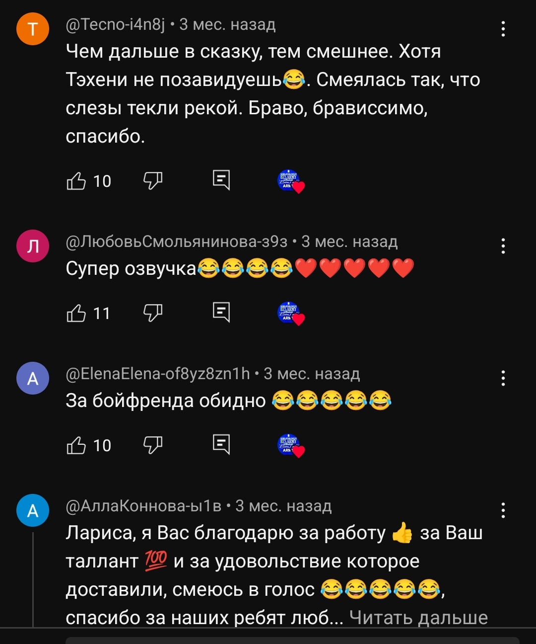 Я сама предпочитаю смотреть оригинал с субтитрами, если что, но понимаю что в РФ и многих других странах люди предпочитают полную озвучку субтитрам.