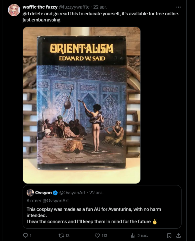 💭 Весь этот доеб за мой косплей и orientalism невероятно нелепый и меня жестко раздражает, потому что: